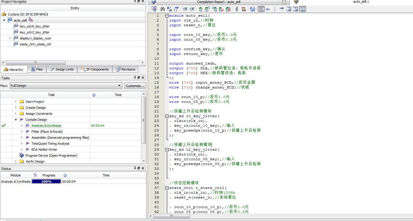 名称:自动售票机设计Verilog代码Quartus 实验箱