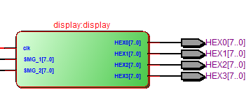 输入clk为系统时钟50MHz,输入SMG_1表示主路倒计时数据显示值,SMG_2表示支路倒计时数据显示。输出HEX0为支路倒计时个位,HEX1为支路倒计时十位,输出HEX2为主路倒计时个位,HEX3为主路倒计时十位。