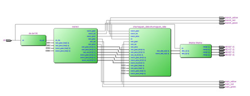 输入clk为系统时钟50MHz,输入main_red、main_green、main_yellow分别表示主路红、绿、黄灯。branch_red、branch_green、branch_yellow分别表示支路红、绿、黄灯。输入main_green_time、main_yellow_time、branch_green_time、branch_yellow_time分别表示主路绿灯时间、主路黄灯时间、支路绿灯时间、支路黄灯时间。输入main_green_BCD、main_yellow_BCD、main_red_BCD分别表示主路绿灯正计数、主路黄灯正计数、主路红灯正计数。branch_green_BCD、branch_yellow_BCD、branch_red_BCD分别表示支路绿灯正计数、支路黄灯正计数、支路红灯正计数。
