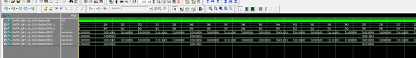 输出main_data_out表示主路倒计时数据显示值,branch_data_out表示支路倒计时数据显示。观察图中main_data_out信号和branch_data_out信号,可以清楚看到倒计时计数正确,对应的红绿灯也正确。因此倒计时控制模块功能验证正确。