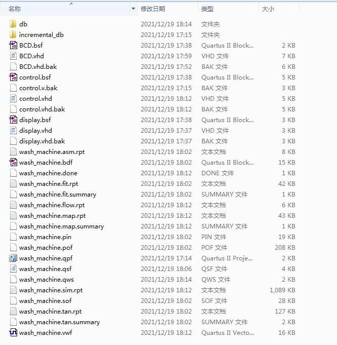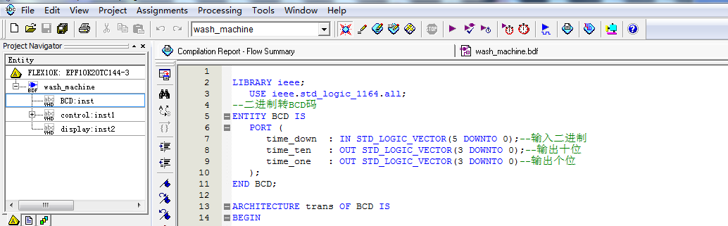名称:洗衣机控制器设计VHDL代码Quartus EPF10K开发板