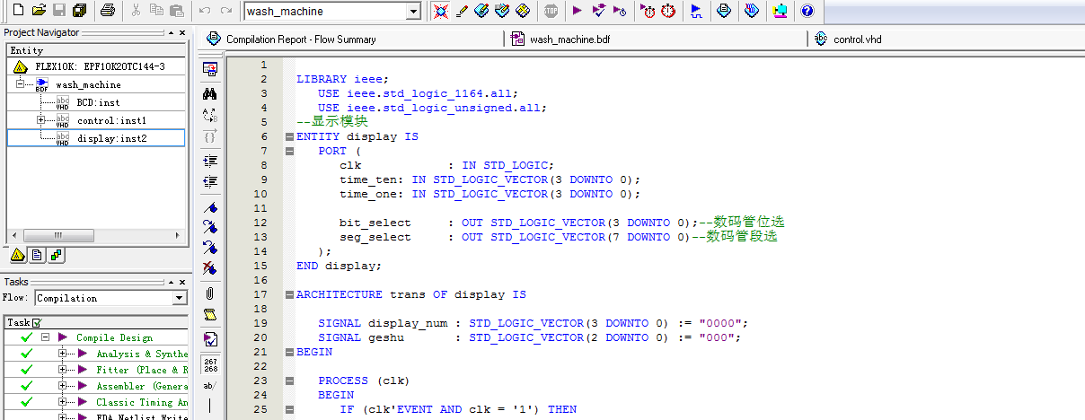 Verilog/VHDL资源下载 » 洗衣机控制器设计VHDL代码Quartus EPF10K开发板