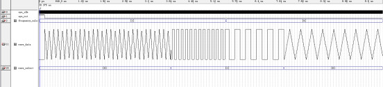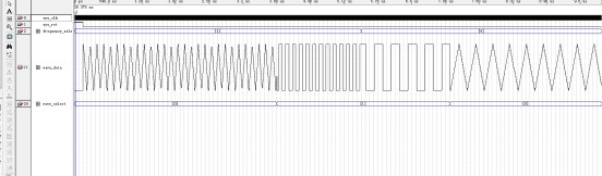 `timescale 1ns / 1ps module wave_generation( input sys_clk, input sys_rst,//高电平复位 input [1:0] wave_select,//00方波;01-三角波 input [7:0] frequency_select,//频率控制 output [7:0] wave_data//输出波形 ); wire clk; wire [7:0] triangular_wave;//三角波 wire [7:0] square_wave;//方波 //时钟输出模块,用于控制不同频率 clk_generate i_clk_generate( . sys_clk(sys_clk), . sys_rst(sys_rst), . frequency_select(frequency_select),//频率控制 . clk(clk) ); //波形产生模块 carrier_wave carrier_wave( . clk(clk), . rst(sys_rst), . triangular_wave(triangular_wave),//三角波 . square_wave(square_wave)//方波 );
