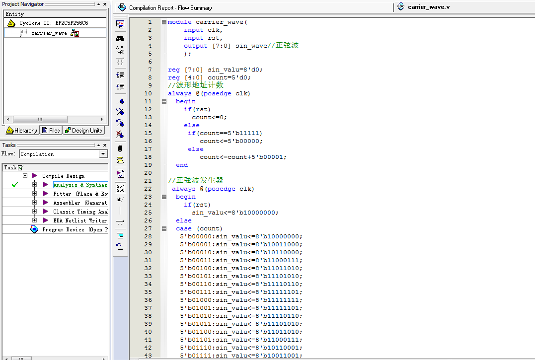 简易正弦波发生器设计Verilog代码Quartus仿真