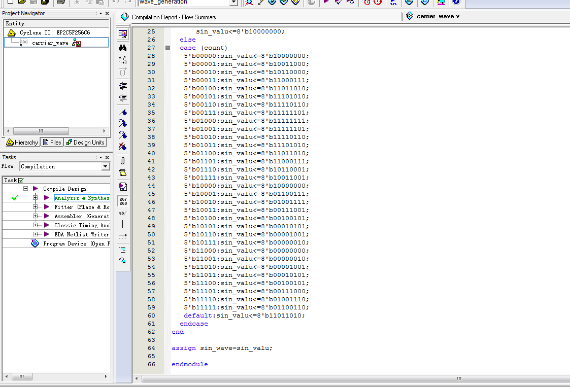 名称:简易正弦波发生器设计Verilog代码Quartus仿真