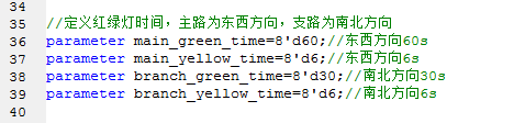 代码中定义了主路红灯36秒,绿灯60秒,黄灯6秒