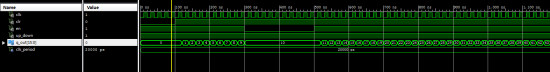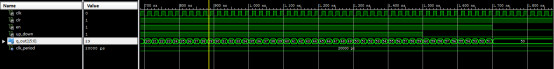 LIBRARY ieee; USE ieee.std_logic_1164.all; USE ieee.std_logic_unsigned.all; ENTITY counter IS PORT ( EN : IN STD_LOGIC; up_down : IN STD_LOGIC; CLR : IN STD_LOGIC; CLK : IN STD_LOGIC; Q_out : OUT STD_LOGIC_VECTOR(15 DOWNTO 0) ); END counter; ARCHITECTURE arch OF counter IS --调用SyncCountBit模块 component SyncCountBit is port ( X, Y, Ci: in std_logic; CLRn, CLK: in std_logic; Co, Q: out std_logic); end component; --定义中间信号 SIGNAL Q_buffer : STD_LOGIC_VECTOR(15 DOWNTO 0); SIGNAL Co_buffer : STD_LOGIC_VECTOR(15 DOWNTO 0); SIGNAL X_buffer : STD_LOGIC_VECTOR(15 DOWNTO 0) := "0000000000000000"; SIGNAL Y_buffer : STD_LOGIC_VECTOR(15 DOWNTO 0) := "0000000000000000"; BEGIN --例化第一个SyncCountBit模块 i0_SyncCountBit : SyncCountBit PORT MAP ( x => X_buffer(0), y => Y_buffer(0), ci => '0', CLRn => CLR, CLK => CLK, co => Co_buffer(0), q => Q_buffer(0) ); --使用FOR 循环调用15个SyncCountBit模块;一共调用了16个SyncCountBit模块组合成16位全加器 lihua : FOR i IN 15 DOWNTO 1 GENERATE i15_SyncCountBit : SyncCountBit PORT MAP ( x => X_buffer(i), y => Y_buffer(i), ci => Co_buffer(i - 1), CLRn => CLR, CLK => CLK, co => Co_buffer(i), q => Q_buffer(i) ); END GENERATE;
