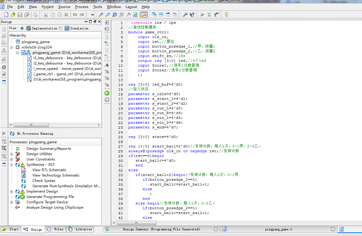 Verilog/VHDL资源下载 » 乒乓球游戏机设计Verilog代码ISE仿真