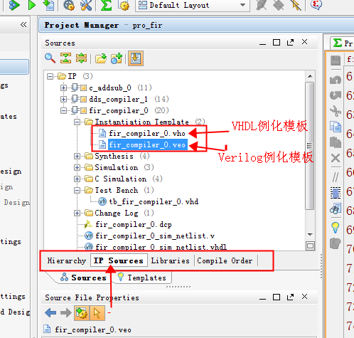 2. Vivado会针对一些IP核自动生成testbench,一般自动生成的testbench是VHDL写的,可以用来参考IP核的时序。如下图