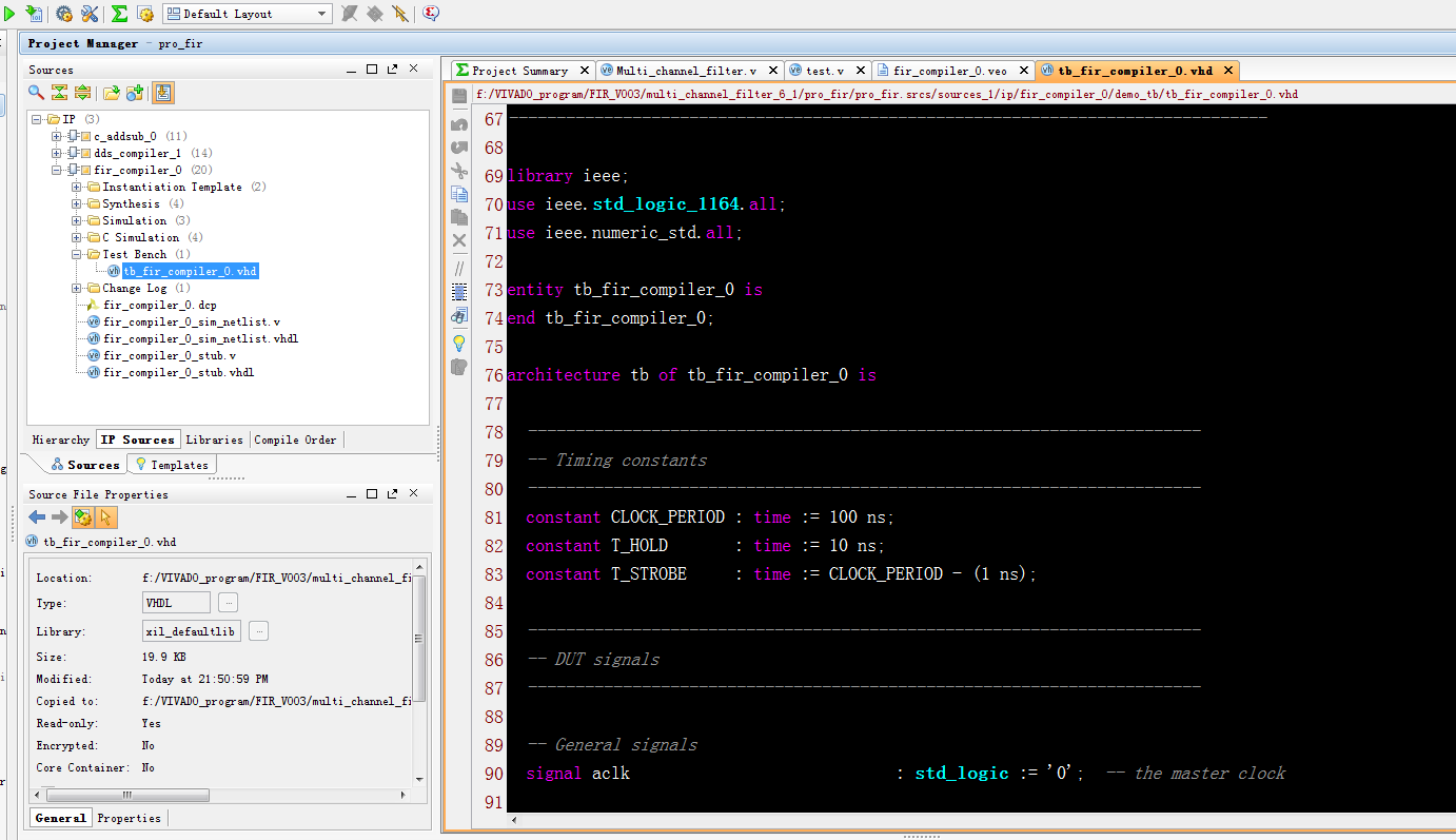 名称:IP核实现fir滤波器设计Verilog代码VIVADO仿真