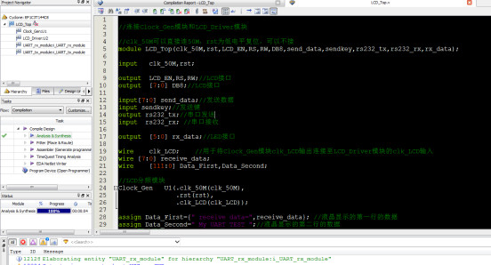 UART串口收发及LCD1602显示设计Verilog代码Quartus ep1c3开发板