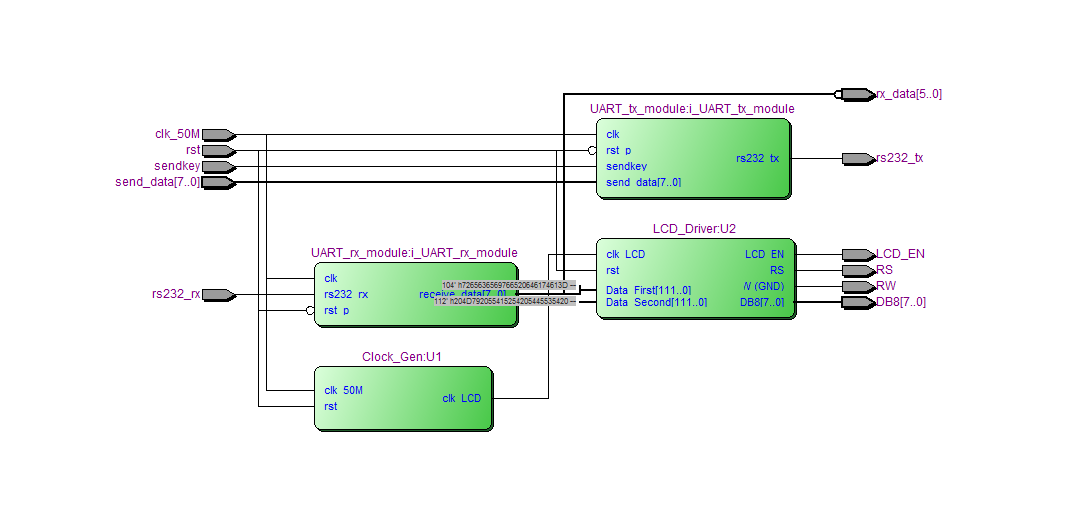 Verilog/VHDL资源下载 » UART串口收发及LCD1602显示设计Verilog代码Quartus ep1c3开发板