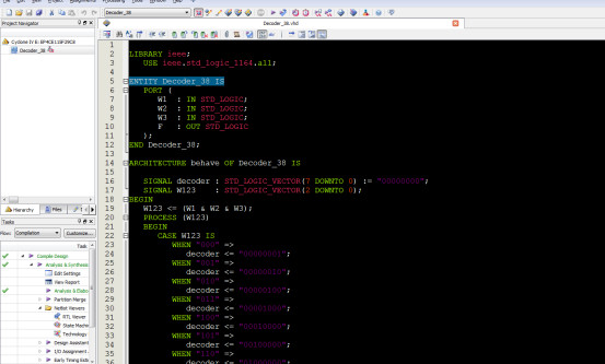 名称:8位全加器和38译码器设计VHDL代码Quartus仿真