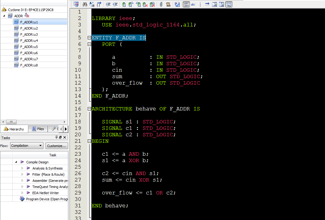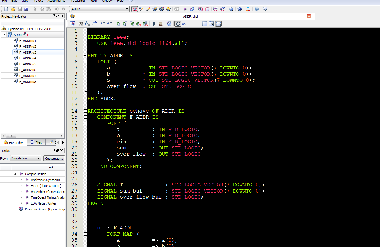 Verilog/VHDL资源下载 » 8位全加器和38译码器设计VHDL代码Quartus仿真