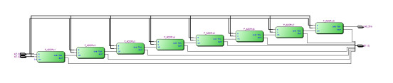 LIBRARY ieee; USE ieee.std_logic_1164.all; ENTITY ADDR IS PORT ( a : IN STD_LOGIC_VECTOR(7 DOWNTO 0);--输入a b : IN STD_LOGIC_VECTOR(7 DOWNTO 0);--输入b S : OUT STD_LOGIC_VECTOR(7 DOWNTO 0);--输出S over_flow : OUT STD_LOGIC--溢出 ); END ADDR; ARCHITECTURE behave OF ADDR IS --调用一位全加器 COMPONENT F_ADDR IS PORT ( a : IN STD_LOGIC; b : IN STD_LOGIC; cin : IN STD_LOGIC; sum : OUT STD_LOGIC; over_flow : OUT STD_LOGIC ); END COMPONENT; SIGNAL T : STD_LOGIC_VECTOR(7 DOWNTO 0); SIGNAL sum_buf : STD_LOGIC_VECTOR(7 DOWNTO 0); SIGNAL over_flow_buf : STD_LOGIC; BEGIN --调用一位全加器 u1 : F_ADDR PORT MAP ( a => a(0), b => b(0), cin => '0', sum => sum_buf(0), over_flow => T(0) ); --调用一位全加器 u2 : F_ADDR PORT MAP ( a => a(1), b => b(1), cin => T(0), sum => sum_buf(1), over_flow => T(1) ); --调用一位全加器 u3 : F_ADDR PORT MAP ( a => a(2), b => b(2), cin => T(1), sum => sum_buf(2), over_flow => T(2) ); --调用一位全加器 u4 : F_ADDR PORT MAP ( a => a(3), b => b(3), cin => T(2), sum => sum_buf(3), over_flow => T(3) ); --调用一位全加器 u5 : F_ADDR PORT MAP ( a => a(4), b => b(4), cin => T(3), sum => sum_buf(4), over_flow => T(4) ); --调用一位全加器 u6 : F_ADDR PORT MAP ( a => a(5), b => b(5), cin => T(4), sum => sum_buf(5), over_flow => T(5) ); --调用一位全加器 u7 : F_ADDR PORT MAP ( a => a(6), b => b(6), cin => T(5), sum => sum_buf(6), over_flow => T(6) );