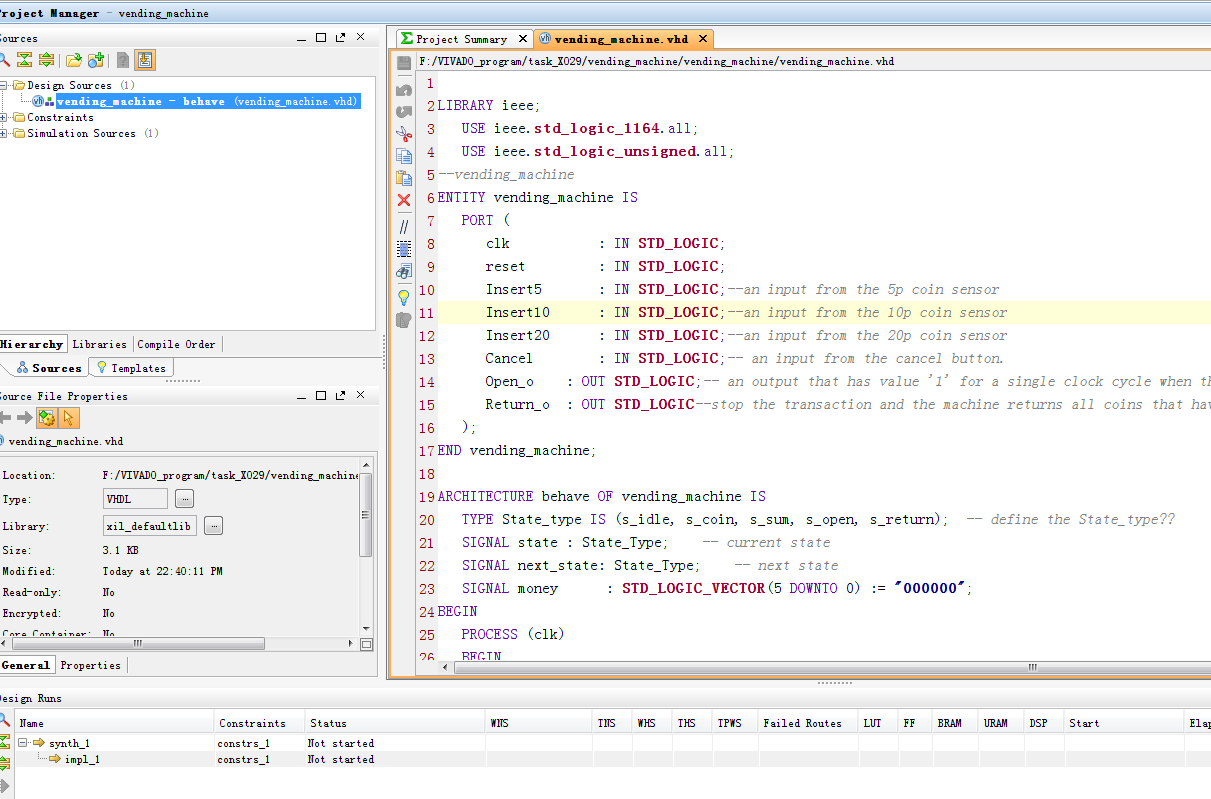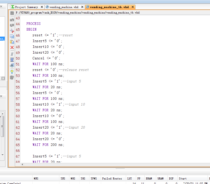 Verilog/VHDL资源下载 » 自动售货机设计VHDL代码VIVADO仿真
