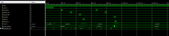 LIBRARY ieee; USE ieee.std_logic_1164.all; USE ieee.std_logic_unsigned.all; --vending_machine ENTITY vending_machine IS PORT ( clk : IN STD_LOGIC; reset : IN STD_LOGIC; Insert5 : IN STD_LOGIC;--an input from the 5p coin sensor Insert10 : IN STD_LOGIC;--an input from the 10p coin sensor Insert20 : IN STD_LOGIC;--an input from the 20p coin sensor Cancel : IN STD_LOGIC;-- an input from the cancel button. Open_o : OUT STD_LOGIC;-- an output that has value '1' for a single clock cycle when the required sum (25p or more) has been reached, '0' otherwise. Return_o : OUT STD_LOGIC--stop the transaction and the machine returns all coins that have been inserted. ); END vending_machine; ARCHITECTURE behave OF vending_machine IS TYPE State_type IS (s_idle, s_coin, s_sum, s_open, s_return); -- define the State_type?? SIGNAL state : State_Type; -- current state SIGNAL next_state: State_Type; -- next state SIGNAL money : STD_LOGIC_VECTOR(5 DOWNTO 0) := "000000"; BEGIN PROCESS (clk) BEGIN IF (rising_edge(clk)) THEN IF (reset = '1') THEN--reset money <= "000000"; ELSIF (state = s_coin) THEN--input money state IF (Insert5 = '1') THEN money <= money + "000101";--input 5 ELSIF (Insert10 = '1') THEN money <= money + "001010";--input 10 ELSIF (Insert20 = '1') THEN money <= money + "010100";--input 20 END IF; ELSE money <= "000000"; END IF; END IF; END PROCESS; PROCESS (clk) BEGIN IF (rising_edge(clk)) THEN IF (reset = '1') THEN state <= s_idle; ELSE state <= next_state;--next state to current state END IF; END IF; END PROCESS;