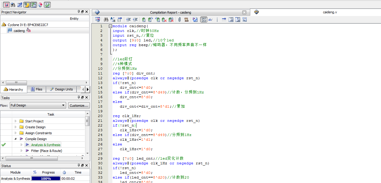 名称:四种花样彩灯控制器设计Verilog代码Quartus仿真