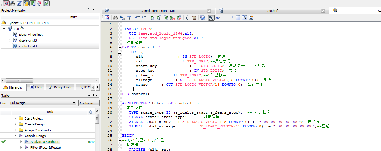 出租车计费器设计VHDL代码Quartus仿真
