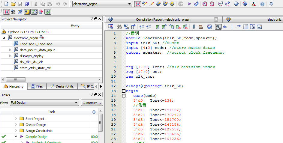 Verilog/VHDL资源下载 » 可以弹奏高中低音电子琴设计Verilog代码Quartus 开发板