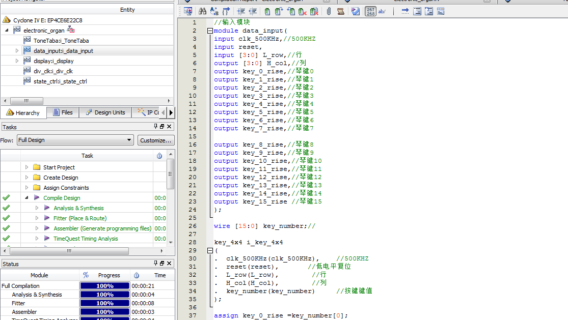 可以弹奏高中低音电子琴设计Verilog代码Quartus 开发板