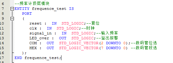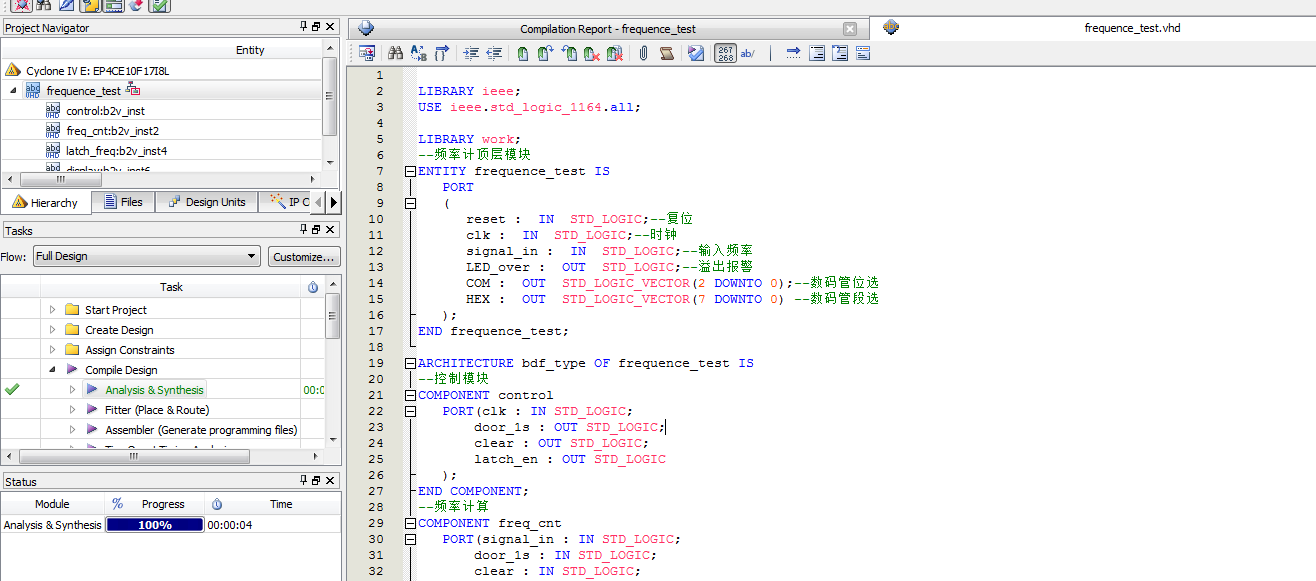 名称:量程自动转换数字式频率计设计VHDL代码Quartus仿真