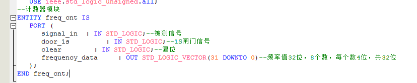 量程自动转换数字式频率计设计VHDL代码Quartus仿真