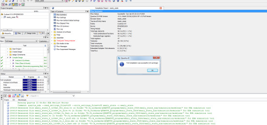 2)、用 Quartus II软件进行编译,并用 Mode lsim软件进行仿真,最后将编译程序下载到设计平台上进行验证。