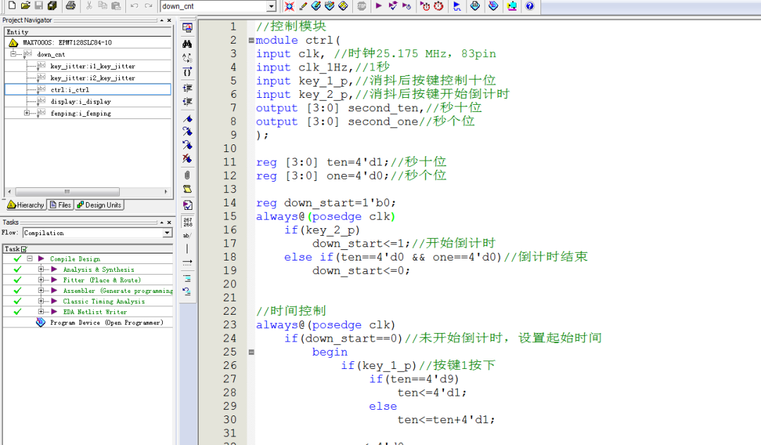 Verilog/VHDL资源下载 » 可调倒计时器设计Verilog代码Quartus仿真