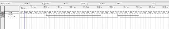 //控制模块 module ctrl( input clk, //时钟25.175 MHz,83pin input clk_1Hz,//1秒 input key_1_p,//消抖后按键控制十位 input key_2_p,//消抖后按键开始倒计时 output [3:0] second_ten,//秒十位 output [3:0] second_one//秒个位 ); reg [3:0] ten=4'd1;//秒十位 reg [3:0] one=4'd0;//秒个位 reg down_start=1'b0; always@(posedge clk) if(key_2_p) down_start<=1;//开始倒计时 else if(ten==4'd0 && one==4'd0)//倒计时结束 down_start<=0; //时间控制 always@(posedge clk) if(down_start==0)//未开始倒计时,设置起始时间 begin if(key_1_p)//按键1按下 if(ten==4'd9) ten<=4'd1; else ten<=ten+4'd1; one<=4'd0; end else if(clk_1Hz)//开始倒计时 begin if(ten==4'd0 && one==4'd0)//结束 begin ten<=4'd0; one<=4'd0; end else if(one==4'd0)//个位为0 begin ten<=ten-4'd1;//倒计时 one<=4'd9; end else begin ten<=ten; one<=one-4'd1;//倒计时 end end assign second_ten=ten;//秒十位 assign second_one=one;//秒个位 endmodule