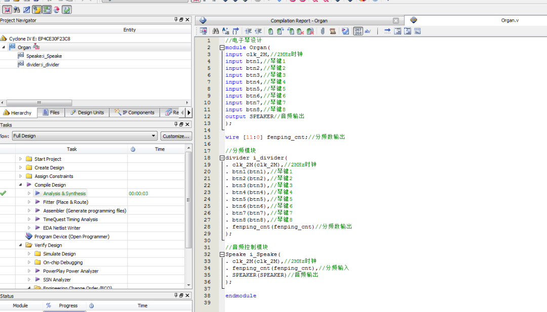 电子琴设计Verilog代码Quartus仿真