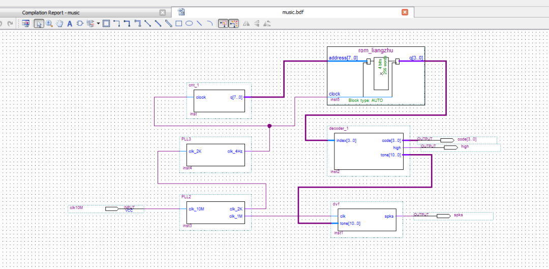 实验原理:组成乐曲的每个音符的发音频率值及其持续的时间是乐曲能连续演奏所需要的两个基本要素,问题是如何来获取这两个要素所对应的数值以及通过纯硬件的手段来利用这些数值实现乐曲的演奏效果。