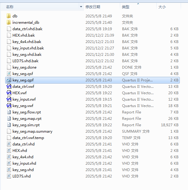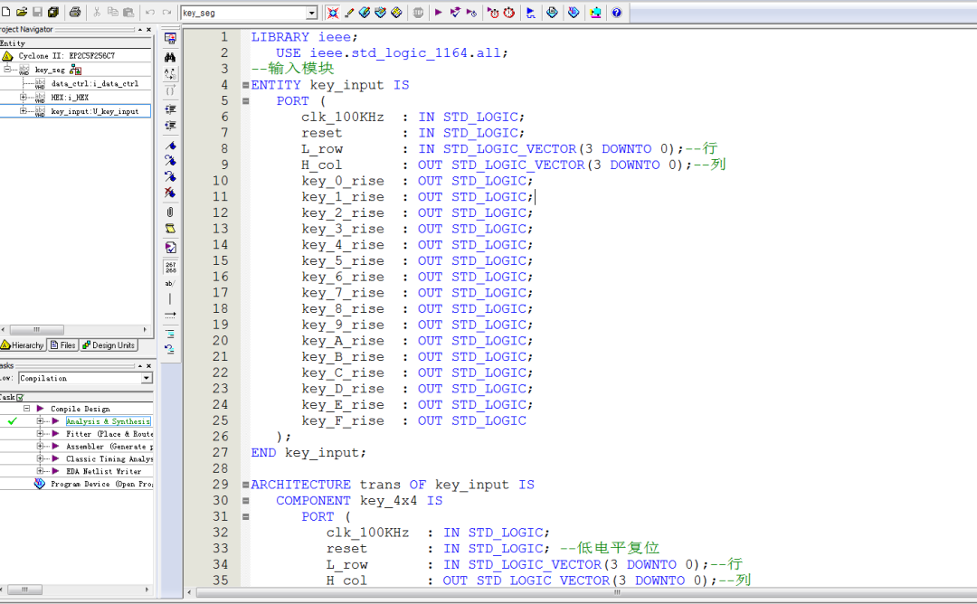 4x4 矩阵键盘输入与四位数码管显示 VHDL 语言 Quartus II软件