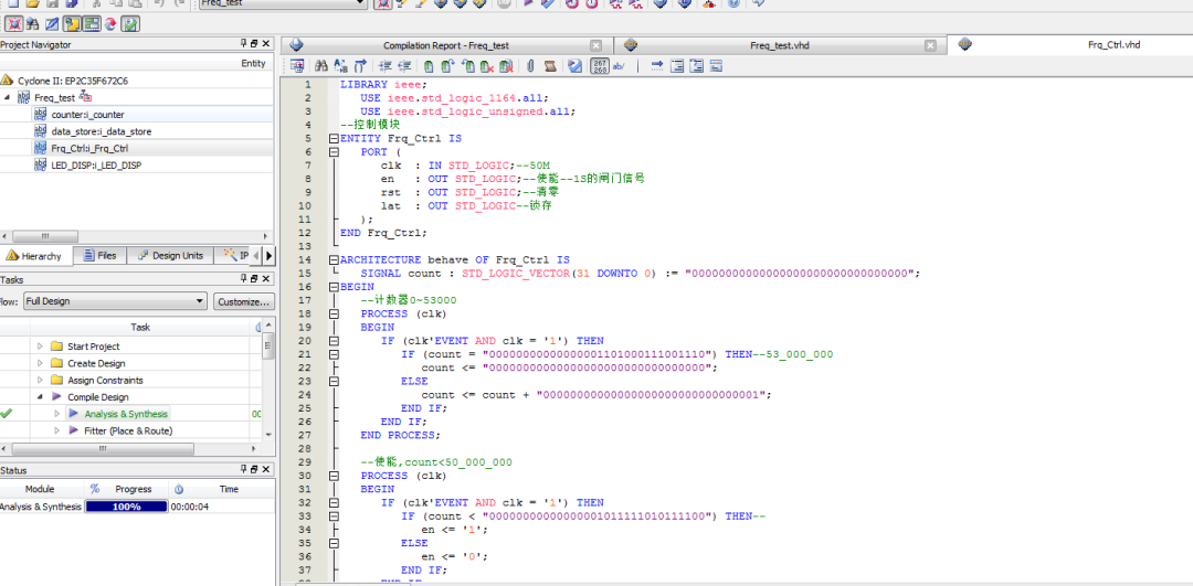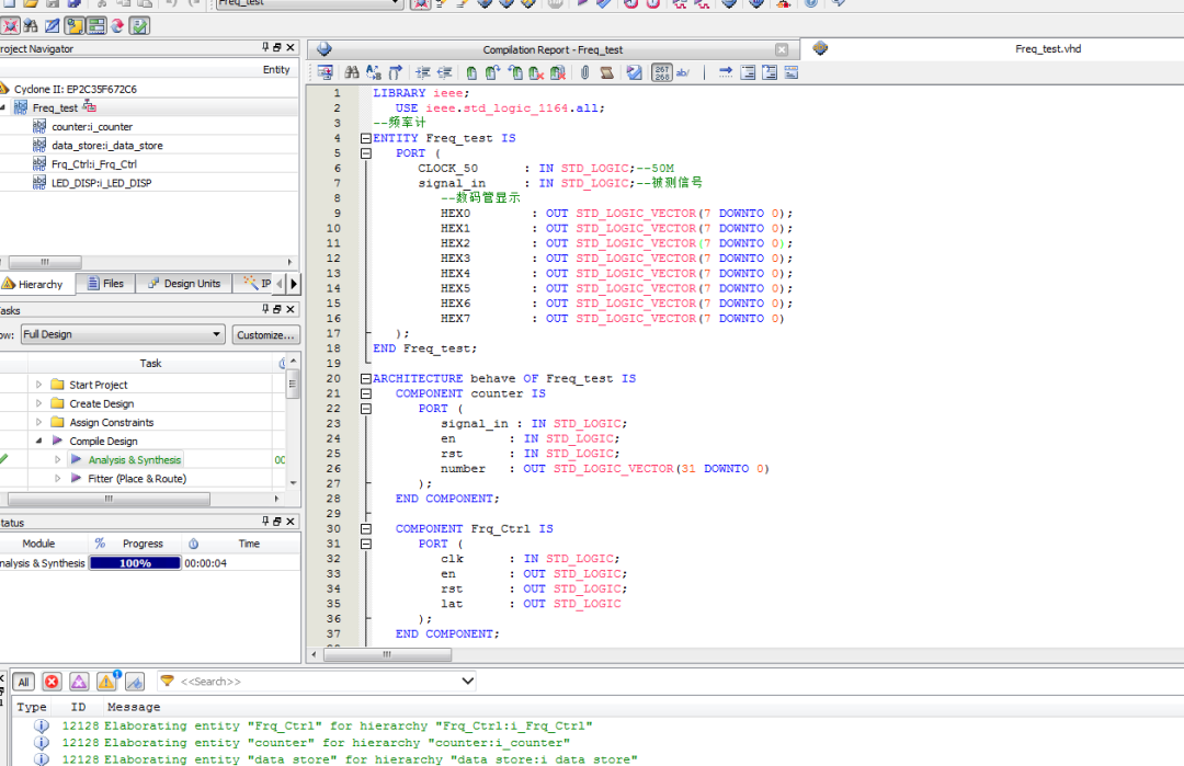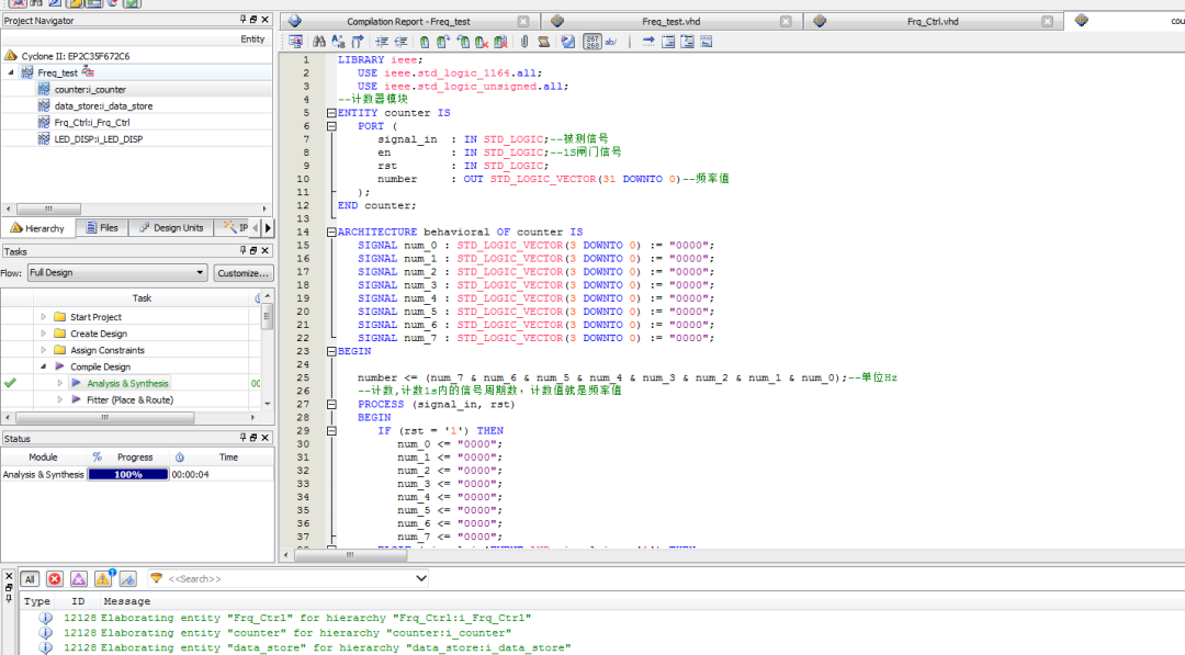 8位直接测频频率计设计VHDL语言 Quartus