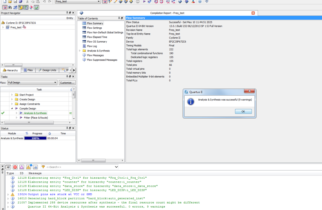 ·LED_DISP:显示模块,将频率值转换为数码管显示格式。