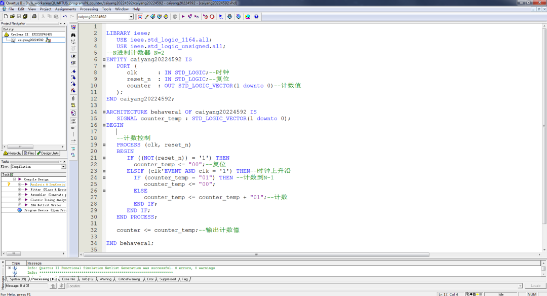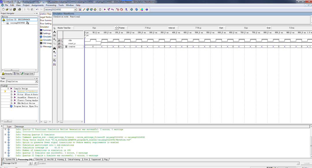 上升沿触发的N进制计数器的设计Verilog代码Quartus仿真
