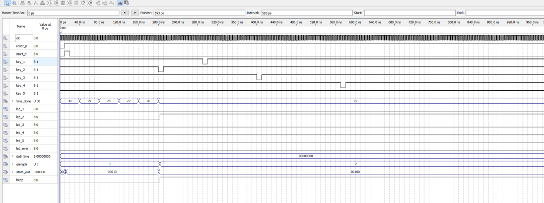 设计采用多模块协同:首先对关键按键做消抖并提取下降沿,避免机械抖动造成多次触发;核心抢答逻辑由qiangda_ctrl的状态机实现,开始后进入倒计时窗口,优先级按检测顺序锁定首个有效按键,随后进入答题阶段并保持胜出者指示。计时模块jishi提供抢答倒计时与答题计时基准;计分模块score_crtl在允许的状态下响应加分/减分键;显示模块display把倒计时、胜出者编号与各选手分数进行动态刷新。