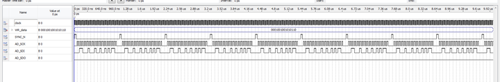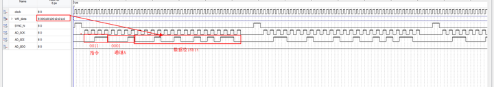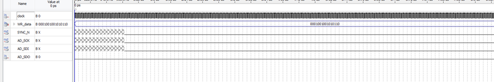 LIBRARY ieee; USE ieee.std_logic_1164.all; USE ieee.std_logic_unsigned.all; ENTITY AD5689_driver IS PORT ( clock : IN STD_LOGIC;--50MHz SYNC_N : OUT STD_LOGIC;--AD5689接口 AD_SDO : IN STD_LOGIC;--AD5689接口 AD_SCK : OUT STD_LOGIC;--AD5689接口 AD_SDI : OUT STD_LOGIC;--AD5689接口 WR_data : IN STD_LOGIC_VECTOR(15 DOWNTO 0)--输入数字信号 ); END AD5689_driver; ARCHITECTURE trans OF AD5689_driver IS constant CMD : STD_LOGIC_VECTOR(3 DOWNTO 0) := "0011";--写指令 constant ADDRA : STD_LOGIC_VECTOR(3 DOWNTO 0) := "0001";--通道A,通道B="1000",通道A和通道B="1001" SIGNAL cnt : STD_LOGIC_VECTOR(7 DOWNTO 0) := "00000000"; SIGNAL AD_SCK_buf : STD_LOGIC := '0'; SIGNAL WR_data_buf : STD_LOGIC_VECTOR(15 DOWNTO 0) := "0000000000000000"; SIGNAL AD_SDI_buf : STD_LOGIC := '0'; BEGIN PROCESS (clock) BEGIN IF (clock'EVENT AND clock = '1') THEN IF (cnt >= "00110101") THEN--53 cnt <= "00000000"; ELSE cnt <= cnt + "00000001";--分频计数器 END IF; END IF; END PROCESS; PROCESS (clock) BEGIN IF (clock'EVENT AND clock = '1') THEN IF (cnt >= "00000000" AND cnt <= "00000001") THEN SYNC_N <= '1';--40ns之后,SYNC拉低,开始进入读取数据的状态 ELSE SYNC_N <= '0'; END IF; END IF; END PROCESS; PROCESS (clock) BEGIN IF (clock'EVENT AND clock = '1') THEN--clock2二分频得到sck的值为--25MHz IF (cnt > "00000001" AND cnt < "00110011") THEN--1~51 IF (cnt(0) = '0') THEN AD_SCK_buf <= '0'; --cnt[0]==0的时候,sck为下降沿 ELSE AD_SCK_buf <= '1';--cnt[0]==1的时候,sck为上升沿