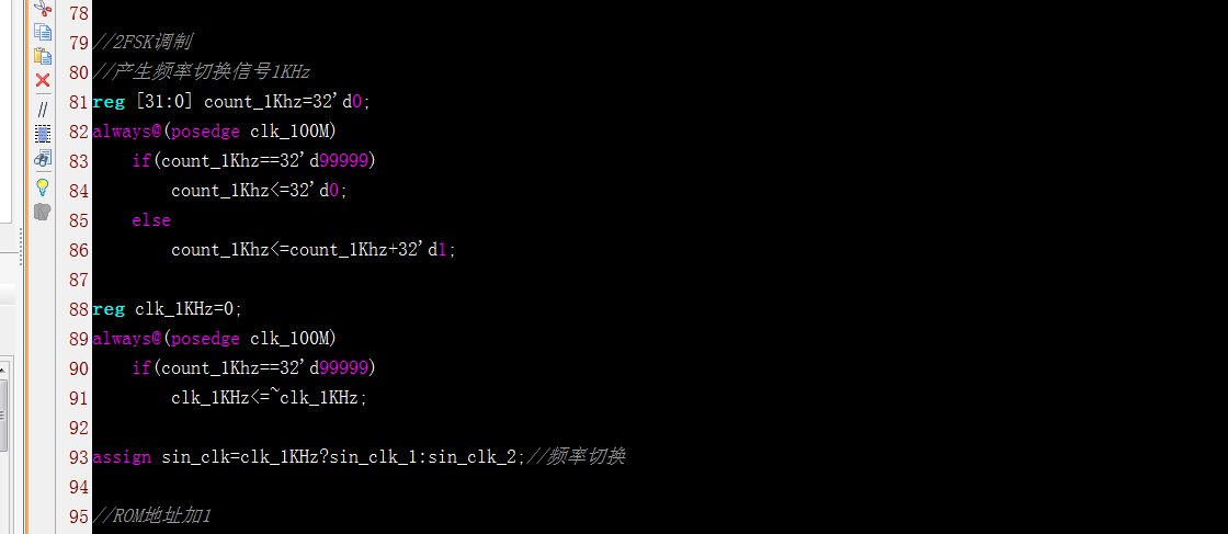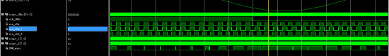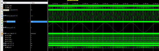 module SPWM( input clk_100M, output SPWM_out, output SPWM_out_ant ); reg [4 : 0] addra_sanjiao=5'd0; wire [7 : 0] douta_sanjiao; //三角波 sanjiao_32 sanjiao_32_U ( .clka(clk_100M), // input wire clka .addra(addra_sanjiao), // input wire [4 : 0] addra .douta(douta_sanjiao) // output wire [7 : 0] douta ); reg [8 : 0] addra_sin=5'd0; wire [7 : 0] douta_sin; //正弦波 wire sin_clk;//根据sin_clk调整sin波输出波形 //sin_512 sin_512_U ( // .clka(sin_clk), // input wire clka // .addra(addra_sin), // input wire [8 : 0] addra // .douta(douta_sin) // output wire [7 : 0] douta //); sin_512 sin_512_U ( .clka(sin_clk), // input wire clka .ena(1'b1), // input wire ena .addra(addra_sin), // input wire [8 : 0] addra .douta(douta_sin) // output wire [7 : 0] douta ); //要求输出正弦波频率1=10K,频率2=12K //由于正弦波ROM由512个点组成,所以sin_clk_1=512*10K=5120K,sin_clk_2=512*12K=6144K reg sin_clk_1=0; reg sin_clk_2=0; //100M分频为5120K和6144K //分频19和16 reg [7:0] count_1=8'd0; reg [7:0] count_2=8'd0; //计数分频 always@(posedge clk_100M) if(count_1==8'd18) count_1<=8'd0; else count_1<=count_1+8'd1; always@(posedge clk_100M) if(count_1>8'd9) sin_clk_1<=1; else sin_clk_1<=0; always@(posedge clk_100M) if(count_2==8'd15) count_2<=8'd0; else count_2<=count_2+8'd1; always@(posedge clk_100M) if(count_2>8'd7) sin_clk_2<=1; else sin_clk_2<=0; //ROM地址加1 always@(posedge clk_100M) begin addra_sanjiao<=addra_sanjiao+1; end always@(posedge sin_clk) begin addra_sin<=addra_sin+1; end //产生SPWM波, reg PWM_wave=0; always@(posedge clk_100M)