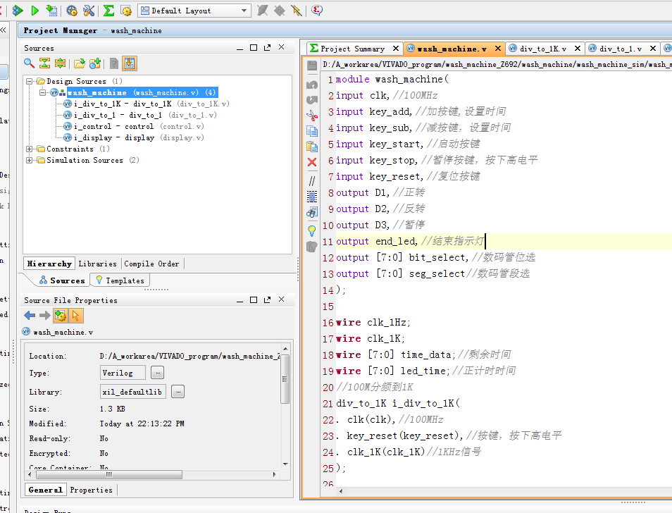 Verilog/VHDL资源下载 » 洗衣机控制器Basys3开发板verilog倒计时