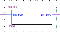 分频模块用于将系统时钟50MHz分频为50KHz,本设计将50KHz作为标准频率信号。分频方法为计数法,即50M除以50K等于1000,则分频系数为1000.因此使用计数器对50MHz进行计数,当计数到1000后回0。计数值前500输出高电平,后500输出低电平,最终得到的输出信号就是50KHz。