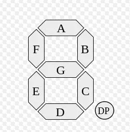 数码管显示模块用于控制数码管将被测频率显示出来。数码管显示使用动态扫描的方式,依次显示频率的不同位。使用8段数码管显示,每个数码管输入为8位,对应下图中的abcdefg7段加上小数点dp,当输入0时对应的段点亮,当输入为1时,对应的段灭。