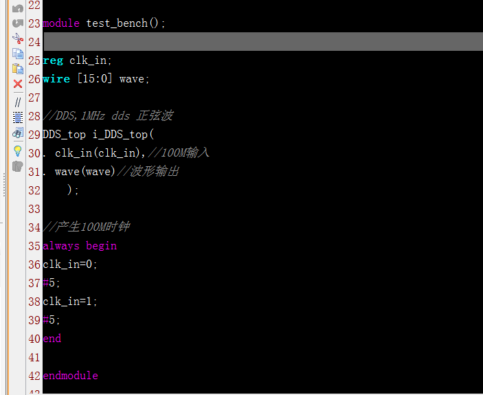 名称:调用DDS IP核输出正弦波Verilog代码vivado仿真