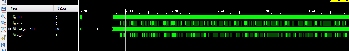 module testbench(); reg clk_in;//时钟 reg reset_n;//复位 wire m_out;//输出M序列 wire syn_clk;//输出同步时钟 wire [2:0] scan;//数码管使能 wire [7:0] seg;//数码管数据 wire [7:0] m_cnt;//255计数标志 wire [7:0] err_cnt_out;//255计数标志 c_er_det i_c_er_det( . clk_in (clk_in ),//时钟 . reset_n (reset_n ),//复位 . m_out (m_out ),//输出M序列 . syn_clk (syn_clk ),//输出同步时钟 . scan (scan ),//数码管使能 . seg (seg ),//数码管数据 . m_cnt (m_cnt ),//255计数标志 . err_cnt_out(err_cnt_out)//255计数标志\ ); //复位 initial begin reset_n=0; #100; reset_n=1; end //产生时钟 always begin clk_in=0; #10; clk_in=1; #10; end endmodule