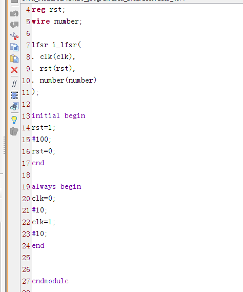 名称:LFSR伪随机序列发生器Verilog代码vivado仿真