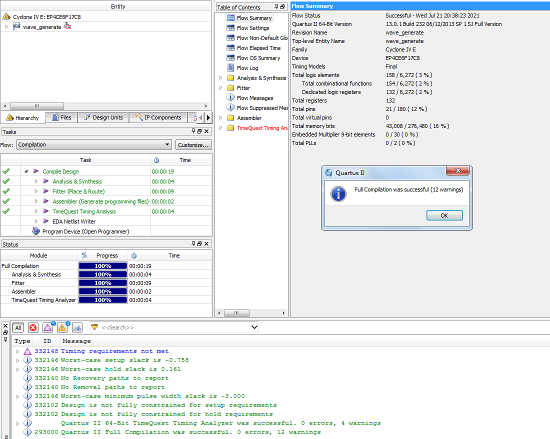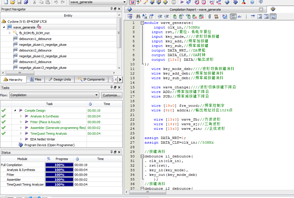 Verilog/VHDL资源下载 » 波形发生器DA输出模拟信号Verilog代码Quartus仿真