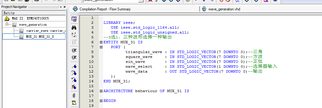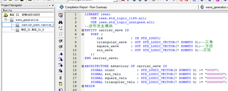 简易波形发生器VHDL代码Quartus仿真
