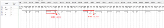 //当检测到巴克码时,输出检测结果y=1