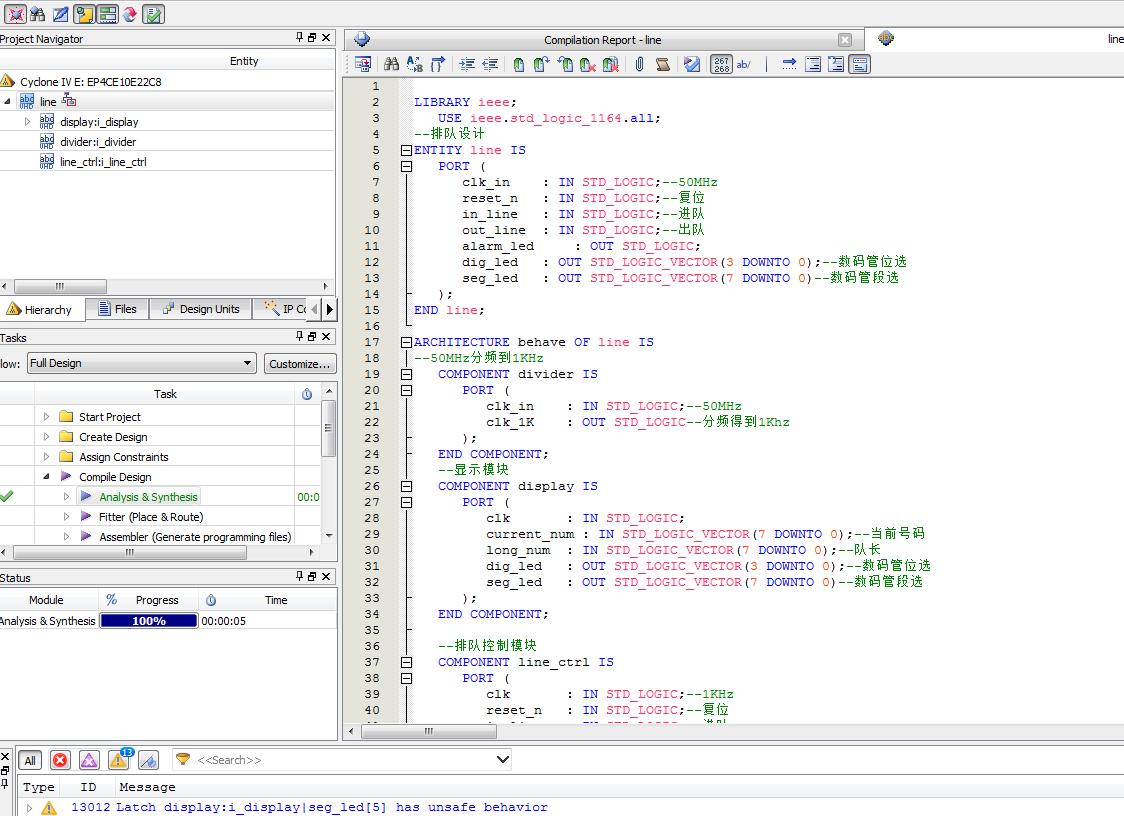单窗口排队机电路设计VHDL代码Quartus仿真
