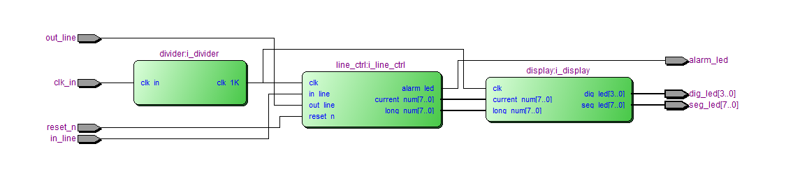 1.进入队伍和离开队伍为外界输入信号,当前服务号码和当前队伍长度各由两个数码管显示;